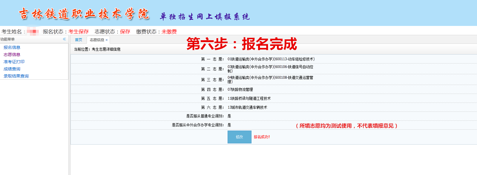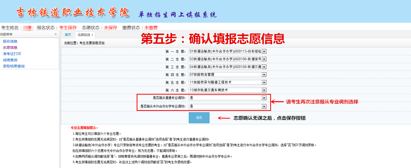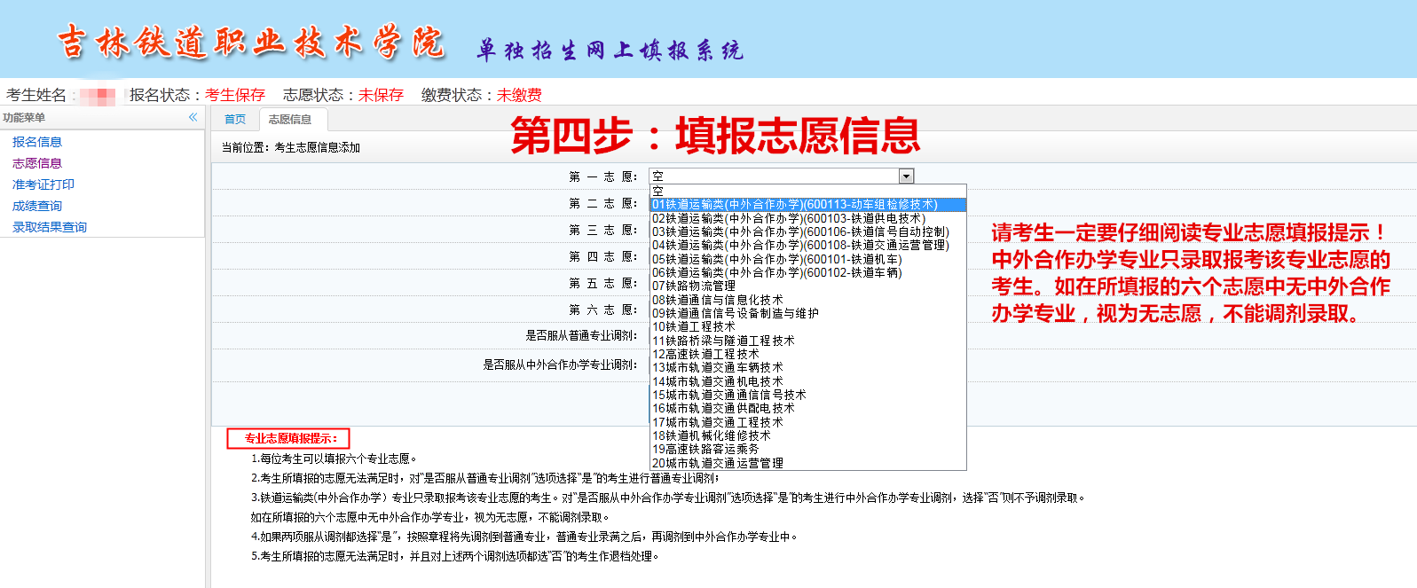 吉铁院单独招生填报志愿流程